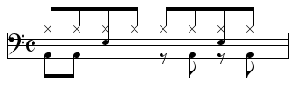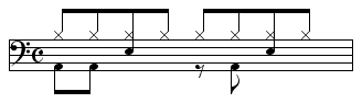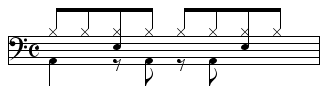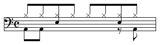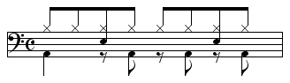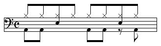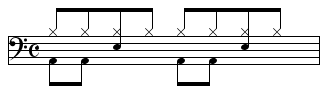 【8ビート】ドラムの基本リズム -1拍目4分音符、それ以外を8分音符裏でバスドラム…