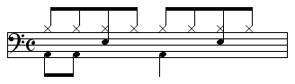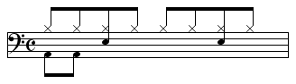 【8ビート】ドラムの基本リズム -1拍目8分音符2発、4拍目8分音符裏にバスドラム…