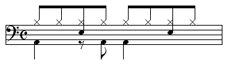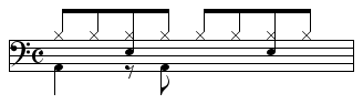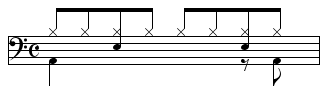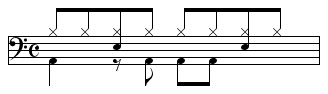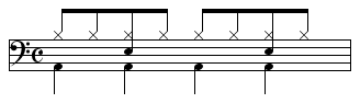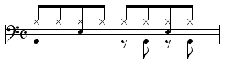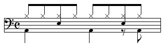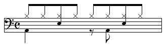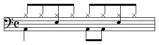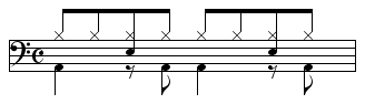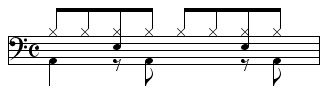 【8ビート】ドラムの基本リズム -1・3拍目4分音符、2拍目8分音符裏にバスドラム…