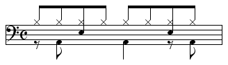 【8ビート】ドラムの基本リズム -3拍目以外を8分音符裏でバスドラムを踏むパターン-
